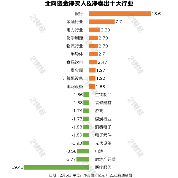 据21投资通智能监测,2月5日,北向资金净买入12.11亿元,其中沪股通净买入16.14亿元,深股通净卖出4.03亿元。