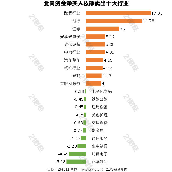 据21投资通智能监测,2月6日,北向资金净买入126.05亿元,其中沪股通净买入60.13亿元,深股通净买入65.92亿元。