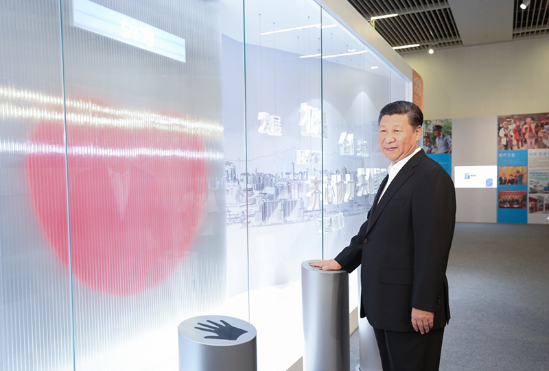 2017年6月26日,习近平总书记在国家博物馆参观香港回归祖国20周年成就展。这是总书记按下“同心圆”互动装置的触摸板。