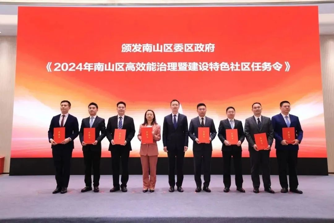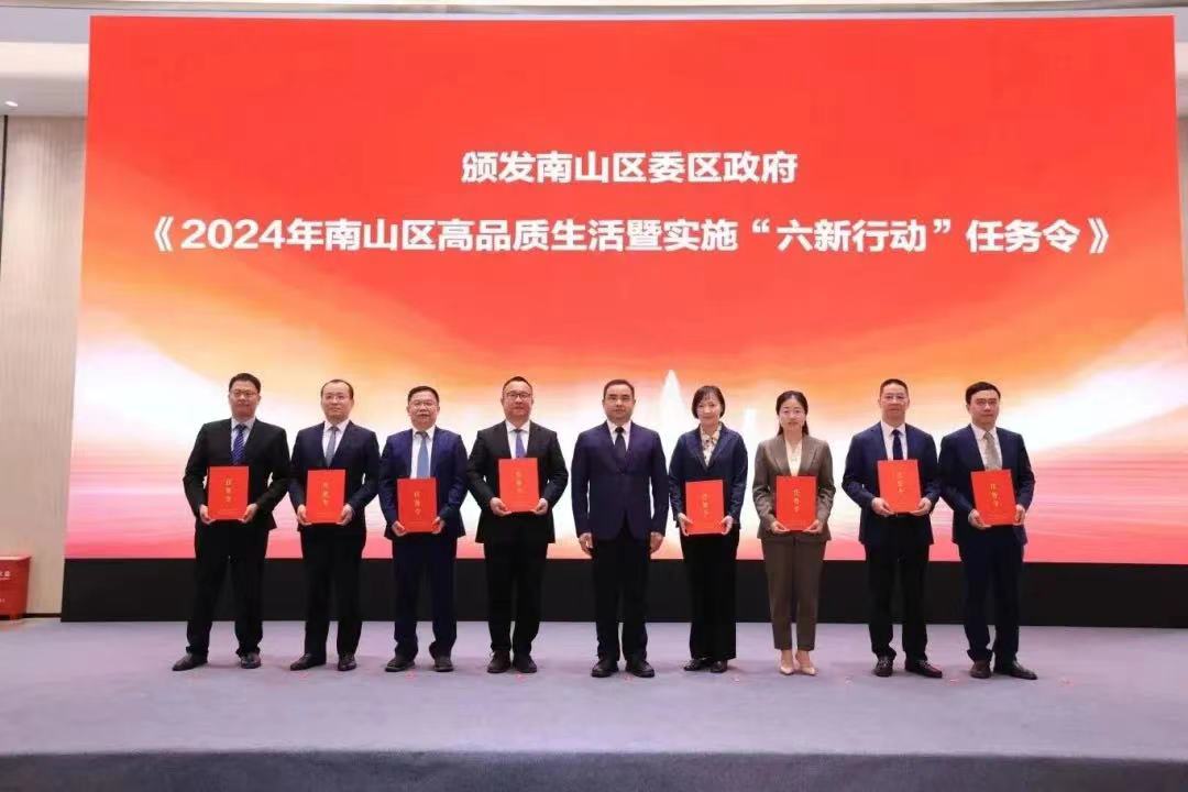 会上颁发了高质量发展、高品质生活、高效能治理任务令;围绕“实干争先年”要求,区发展改革局、区工业和信息化局、西丽街道党工委负责同志作了表态发言;8个街道在重点项目攻坚一线的负责同志,现场以视频连线形式作了汇报。