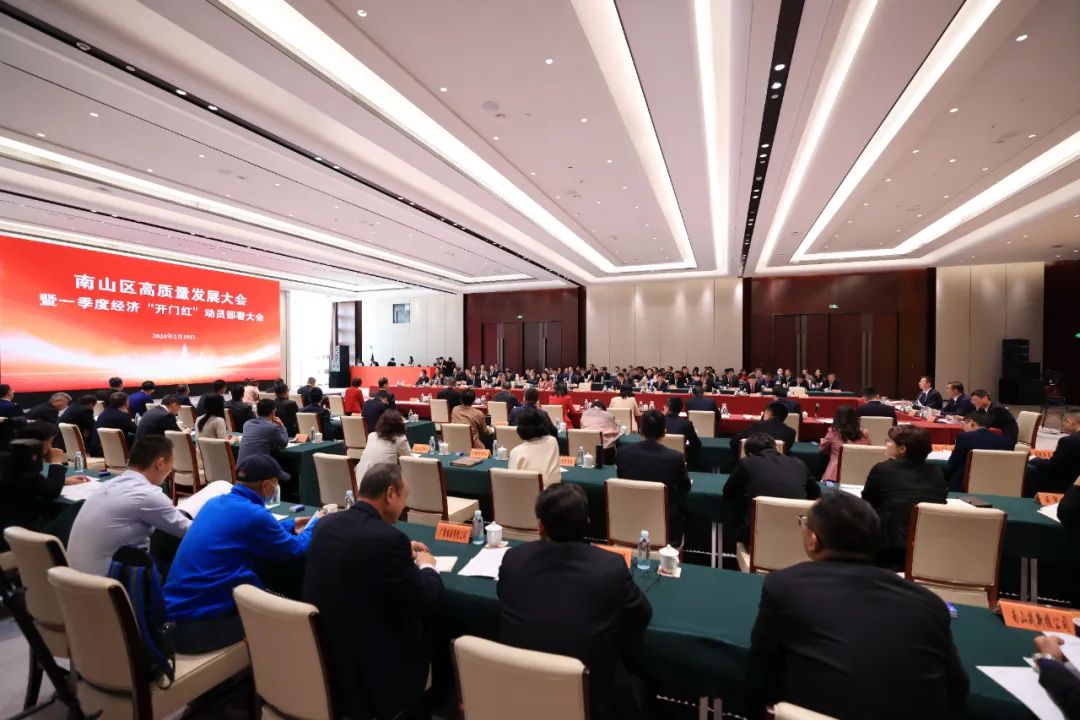 2月19日,南山区高质量发展大会暨一季度经济“开门红”动员部署大会召开。会议深入贯彻落实习近平总书记视察广东重要讲话、重要指示精神,落实全省高质量发展大会、全市高质量发展工作推进会议要求,旗帜鲜明宣示南山以强烈的责任意识、片刻不能等待、片刻不能迟疑、片刻不能懈怠的精神状态和全力以赴干好每一天的坚定决心,动员和号召全区各级各部门各单位和广大干部群众争先恐后、争先进位、争创一流的必胜信心,以高质量发展的步步推进,赢得现代化建设的节节胜利,更好服务和支撑全省、全市发展大局。区委书记黄湘岳出席会议并讲话,区委副书记、区长李小宁主持会议,区人大常委会党组书记、主任程正华,区政协党组书记、主席陈军,区委副书记、政法委书记廖子彬出席会议。
