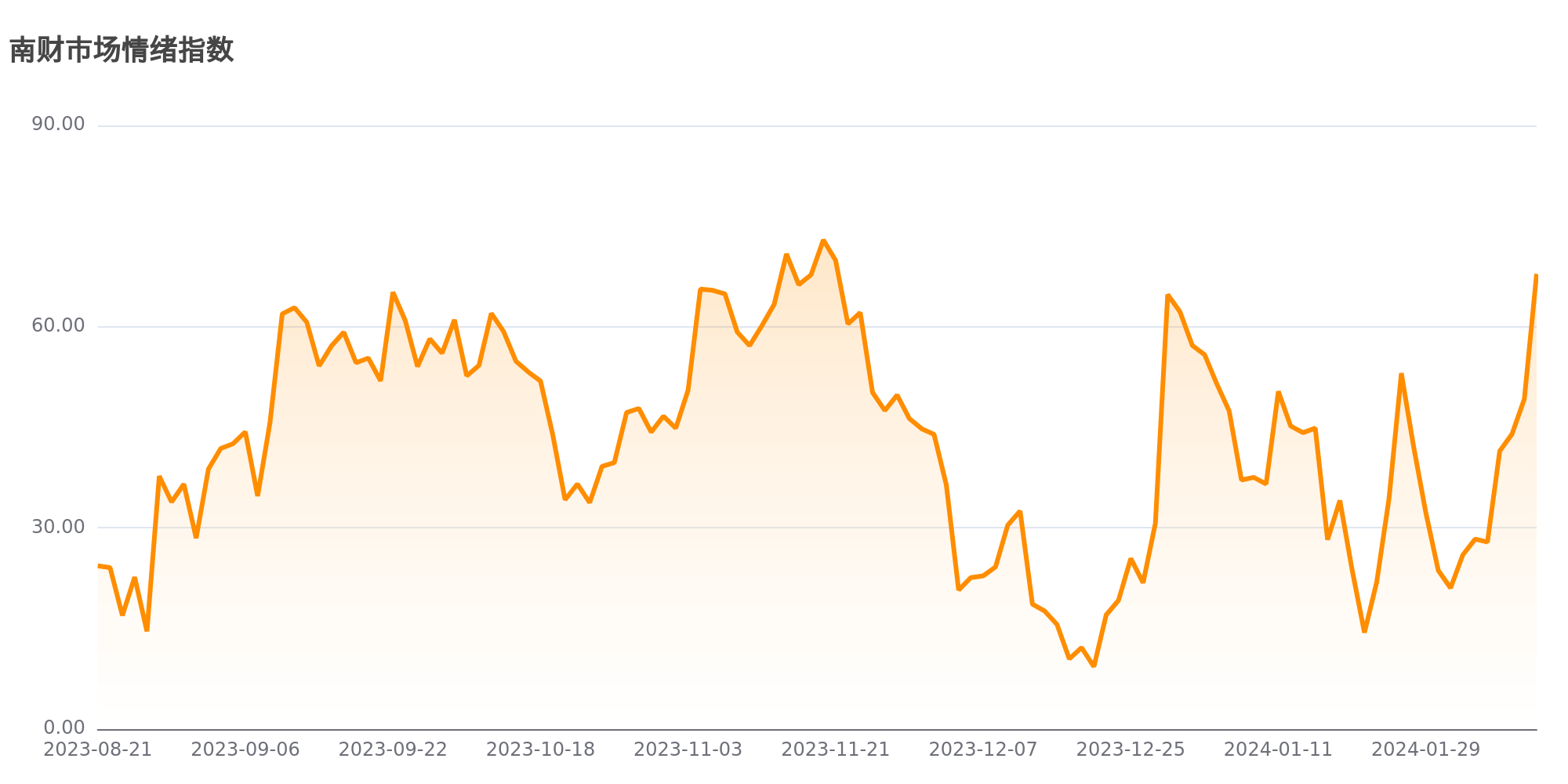 今日南财市场情绪指数为67.9,较前一交易日49.2大幅上涨,市场投资热度明显提升。