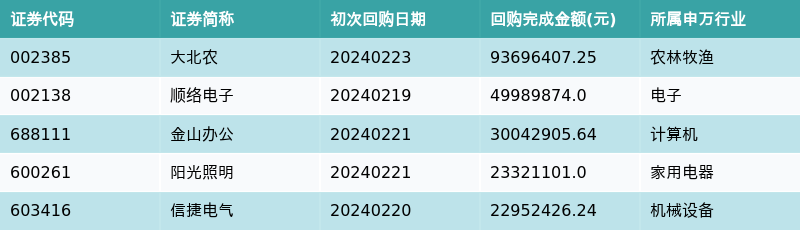 上周共有132条开始执行回购公告,其中执行金额最多的5条公告为: