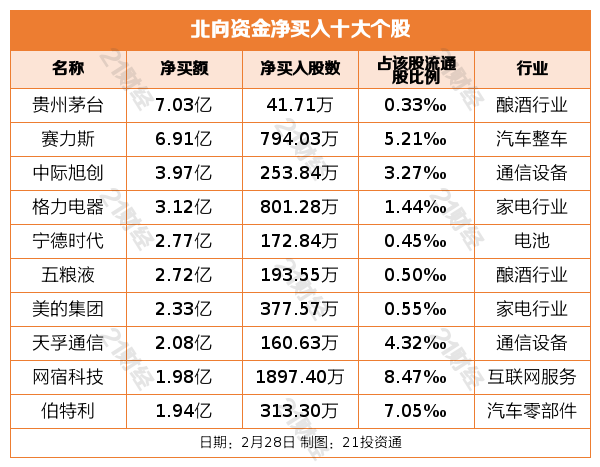 净买入贵州茅台7.03亿元,净卖出比亚迪2.17亿元