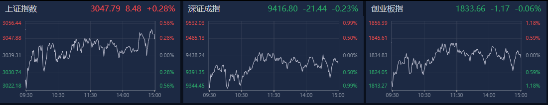 市场全天震荡分化,沪指偏强。南财金融终端显示,截至收盘,沪指涨0.28%,深成指跌0.23%,创业板指跌0.06%。总体上个股跌多涨少,全市场超4300只个股下跌。