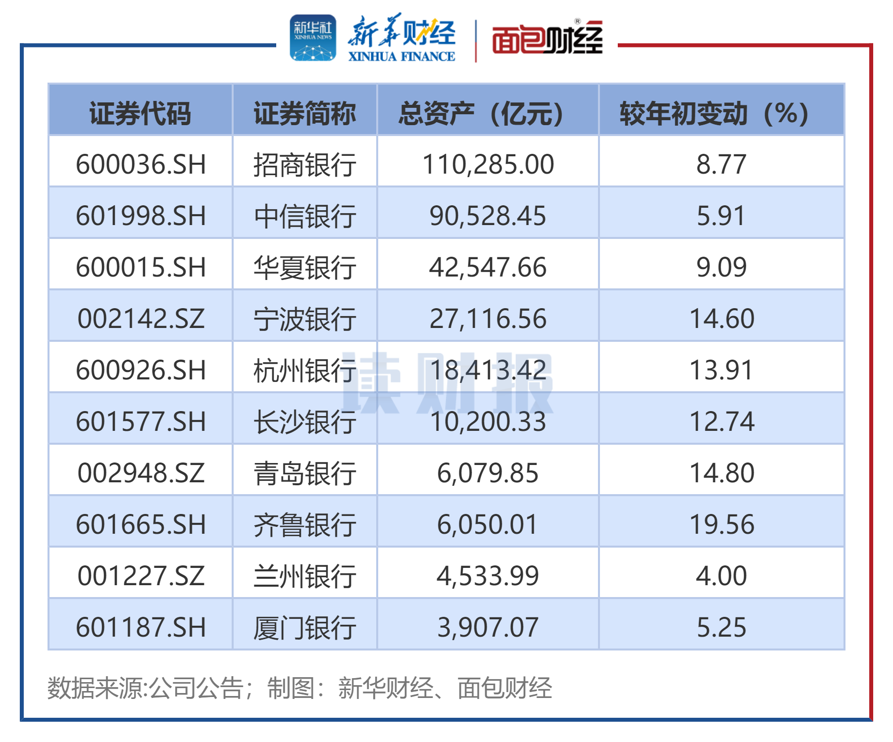 招商银行总资产超11万亿,齐鲁银行总资产增长快