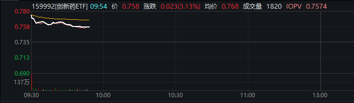 相关ETF方面,跟踪中证创新药产业指数的创新药ETF(159992)涨超3%,成交额超5.7亿元,换手率8.42%,盘中交投活跃。近两日来,创新药板块热度较高,Wind数据显示,该ETF过去2个交易日资金净流入达到1.29亿元。