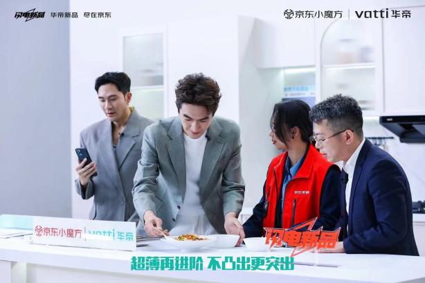 营销层面,在3月14日举办的新品直播活动中,“超薄品鉴官”林更新与京东高管、华帝副总裁一起空降直播间,与大家共同体验新品。在直播中,林更新大秀厨艺,通过烹饪美食的互动,巧妙地将S36“超薄、不凸出”的特点展现了出来。S36采用前沿超薄结构,前后纵深仅38cm,一举解决了“烟机碰头”的问题。同时,S36油烟机的拢烟腔边框也是超薄设计,1.2cm的超薄边框加大了油烟机的“腔占比”,同时结合三腔分区设计让拢烟效果变得更好,油烟从此无处可逃。