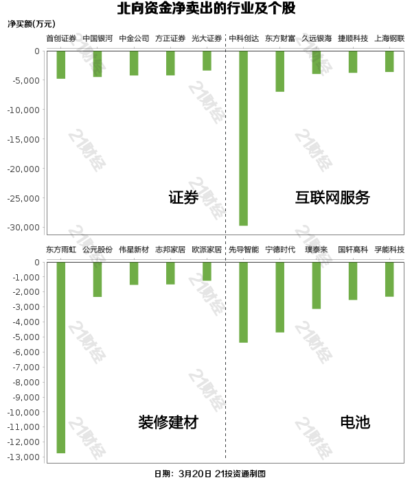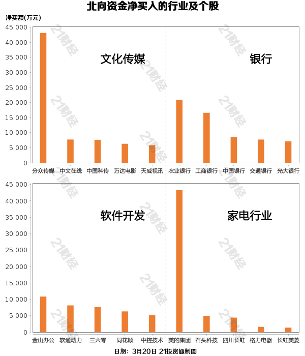 据21投资通智能监测,3月20日,北向资金净买入55.68亿元,其中沪股通净买入25.6亿元,深股通净买入30.09亿元。