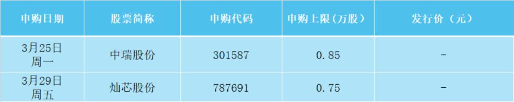 本周A股将有2只股票发行申购,为创业板新股和科创板新股。