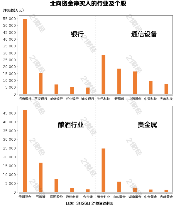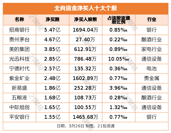 据21投资通智能监测,3月26日,北向资金净买入47.25亿元,其中沪股通净买入22.52亿元,深股通净买入24.73亿元。