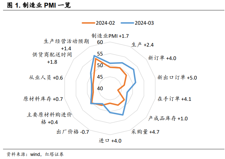 总结:在各项推动发展、提振信心的政策落地生效,以及节后企业加快复工复产的推动下,3月份制造业和非制造业的生产经营活动明显加快,同时对未来的预期改善。除出口对经济增长的拉动作用会持续之外,内需回暖对供需关系的修复也值得期待。不过,基建和地产领域仍需财政政策积极发力。