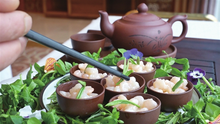 碧螺春宴中的碧螺熘虾仁最受食客喜爱
