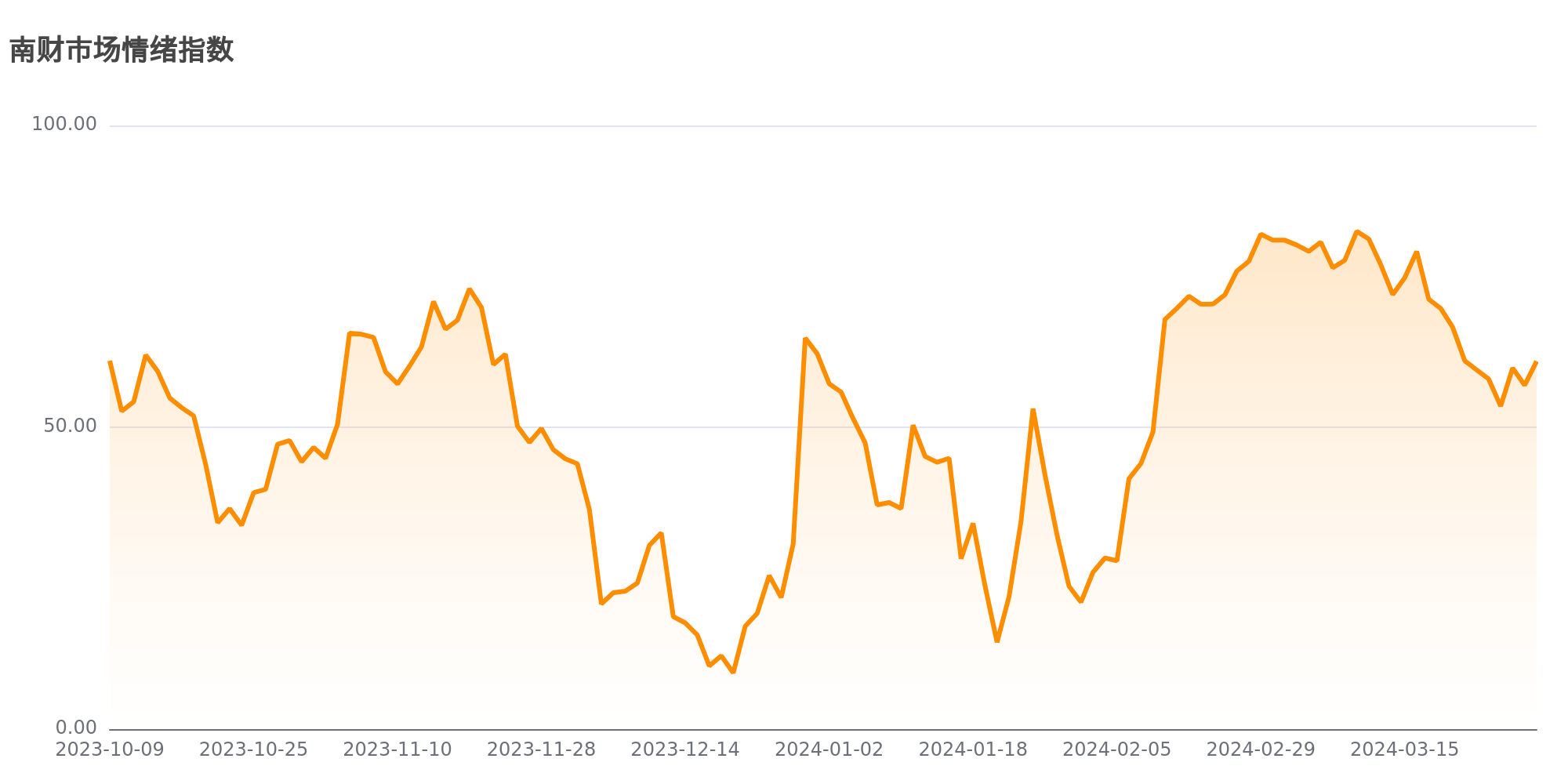 为量化投资者当前对购买股票的情绪程度,基于中国波指(iVIX)与VIX指数,南财量化团队挑选出四大指标,综合加权得到了南财情绪指数。南财情绪指数范围从0-100,越低表明市场投资热度较低,越高表明市场投资热度较高。南财情绪指数有助于市场参与者更好地认识和分析股票市场的波动风险和跳跃风险,市场投资热度偏低表明投资者过于担心,如果当前市场定价并不高,这可能是一个买入机会。市场投资热度偏高则表明投资者过于兴奋,如果市场处于高位,市场可能会进行调整。南财情绪指数的发布,不仅有利于投资者进行更佳的风险管理,也为维持金融市场的稳定繁荣提供了有效的参考依据。