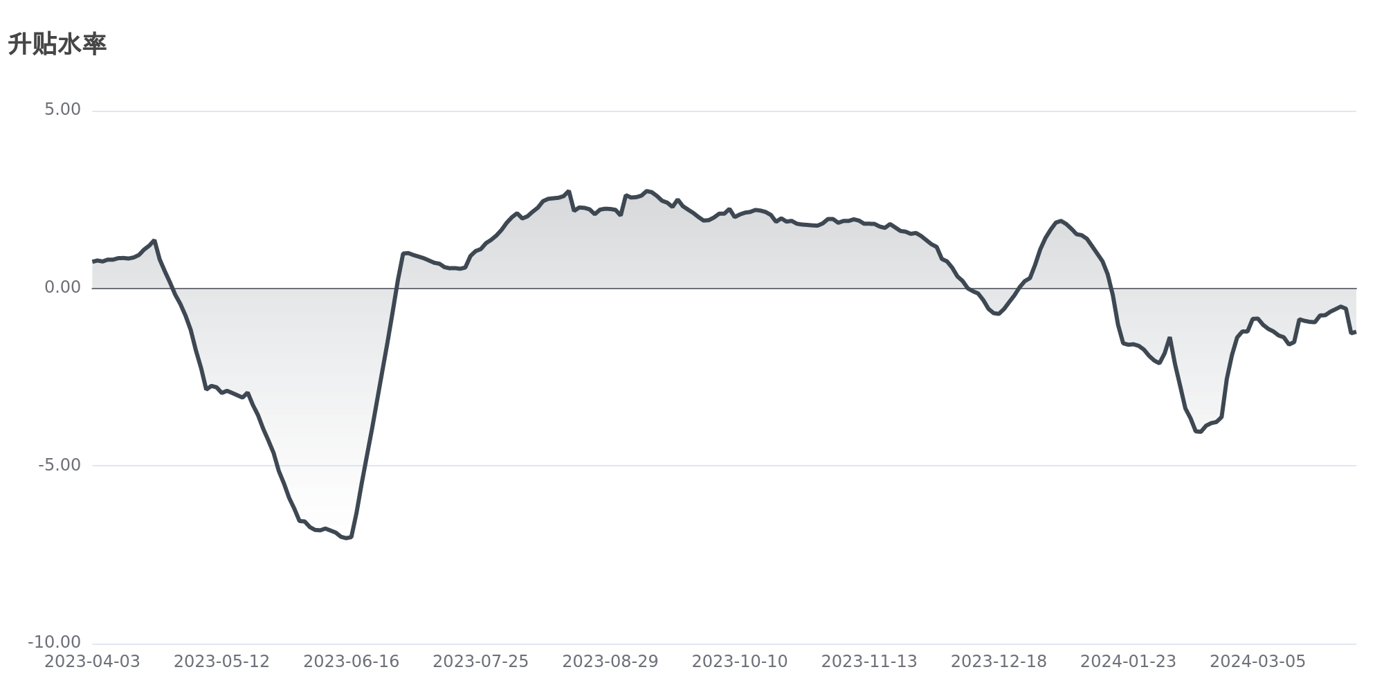 今日该指标值为-1.22%,目前该指标处于近一年较低区间,说明投资者对认为A股市场趋于触底反弹。反映期货市场投资者对市场的看法,该指标越高说明投资者认为当前市场较强,越低则说明认为市场相对较弱,因而与上证指数正相关。