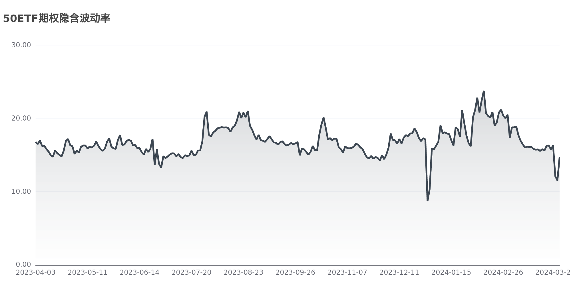 今日该指标值为14.75,目前该指标处于近一年较低区间,说明投资者认为未来市场波动处于较低水平。50ETF期权波动率(原中国波指iVIX,也称作恐慌指数),指数与上证指数存在负相关性,但不绝对。指数点位越高,代表投资者预期后市波动程度愈加激烈;指数点位越低,代表预期后市的走势愈加平稳。VIX在剧烈波动处有聚集的特征,而这些波动聚集处通常是在市场剧烈波动,或指数的低点和高位处。那么,在股指高位处的 VIX 聚拢高企意味着市场风险的集中;而股指快速下跌处的 VIX 高企意味着市场风险的释放。若VIX指数在股市快速下跌时持续的高企并突破极值,这可能预示市场的重大转折——风险已经释放到极致,股市将开始企稳并上扬。