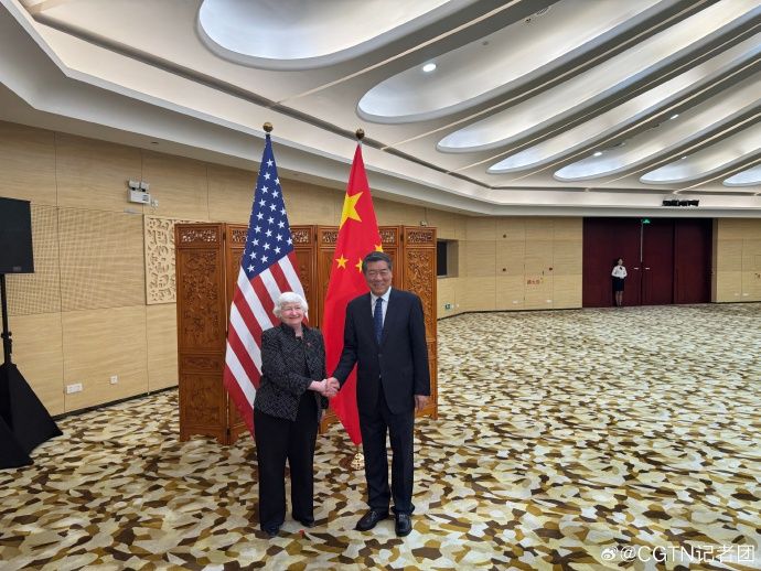 2024年4月5日下午,中共中央政治局委员、国务院副总理何立峰在广州会见美财政部部长珍妮特·耶伦。