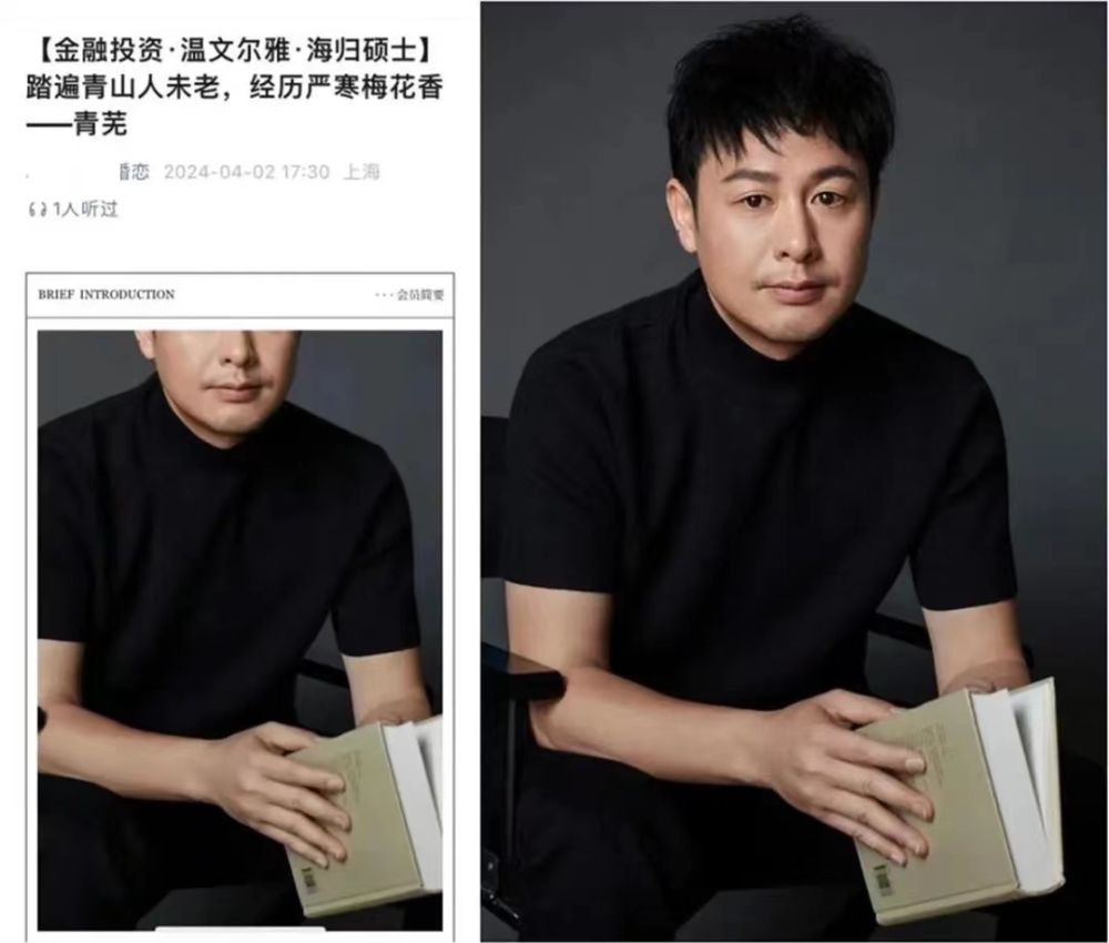 据澎湃新闻报道,搜索发现,发布该帖子的公众号名为“钻石婚恋”,其发布的一篇文章介绍了一名为青芜的“海归硕士”,文中人物配图均截取了眼睛及以上部分,但无论姿势、穿着还是细节,都与公开披露的演员张颂文的照片高度雷同。