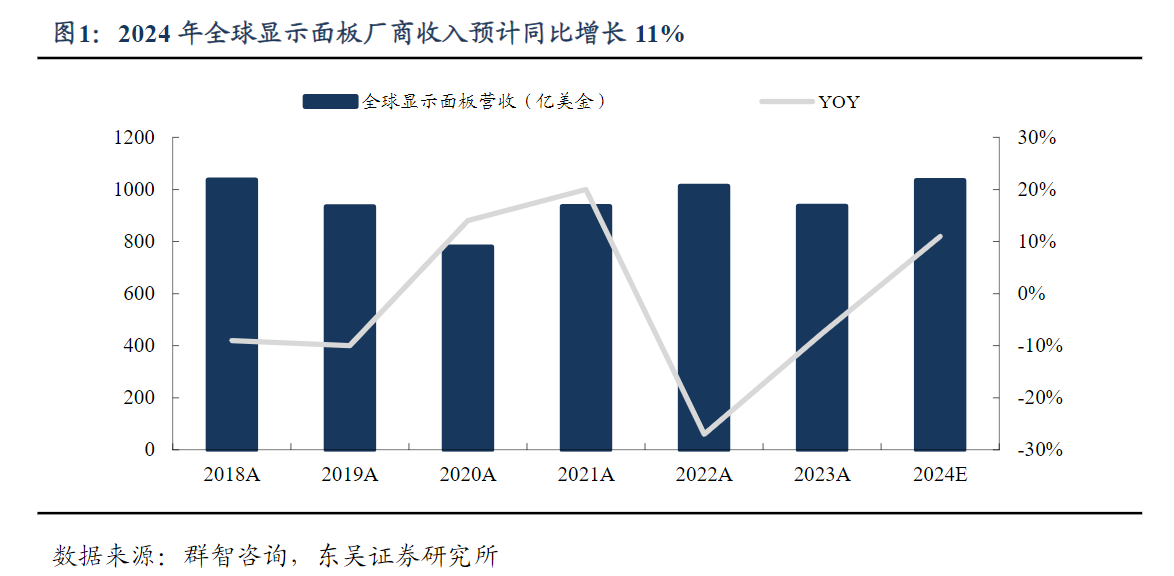 整体来看,今年面板市场或将迎来“转折之年”。群智咨询(Sigmaintell)预计,2024年全球面板厂商销售收入将同比增长约11%,达到约1033亿美金。