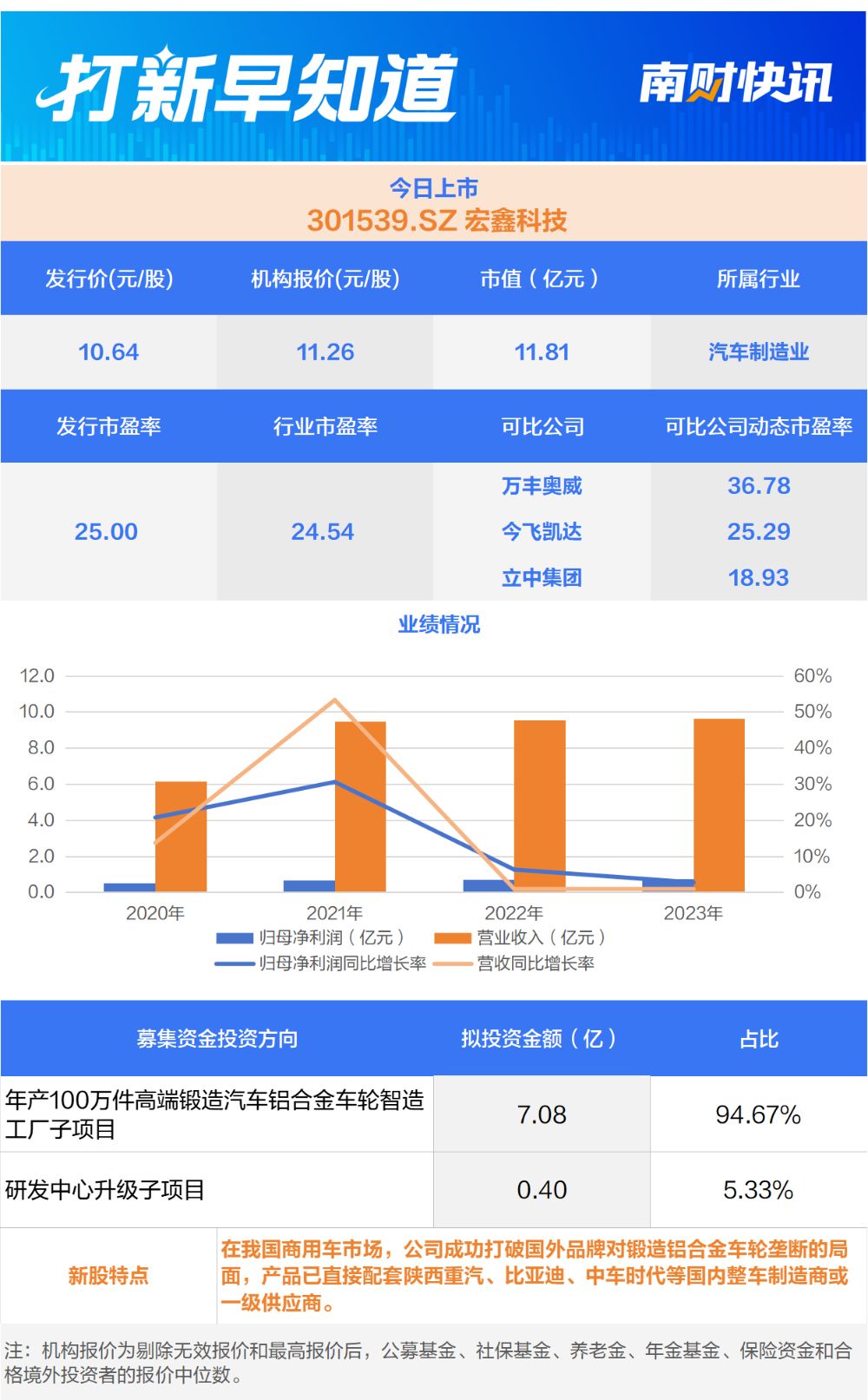 4月15日,宏鑫科技在创业板上市,该公司是铝合金车轮领域细分龙头之一。