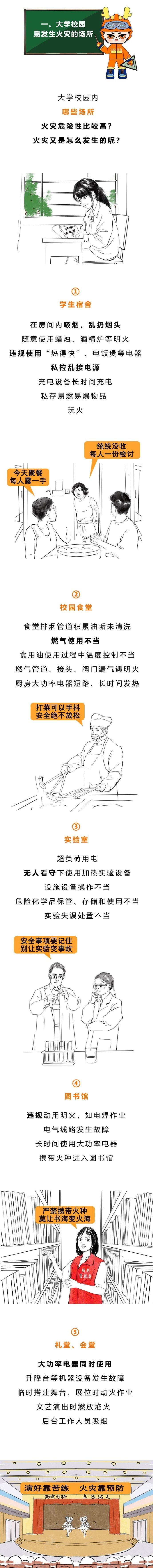 作为人员密集场所,校园的消防安全至关重要。大学校园内,哪些场所容易发生火灾?在校生应掌握哪些消防安全知识?