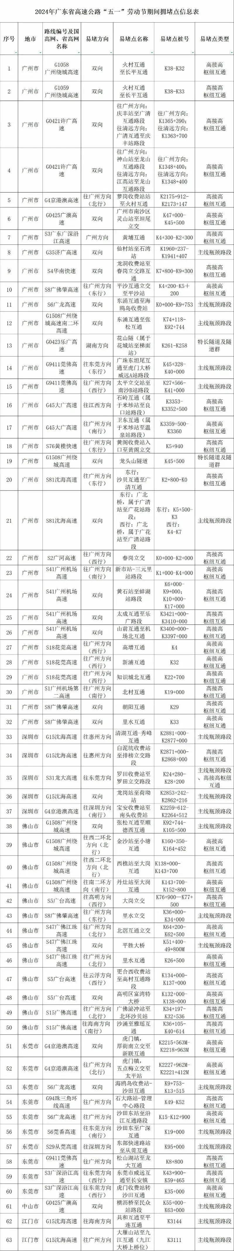 高速公路出行情况及易拥堵点