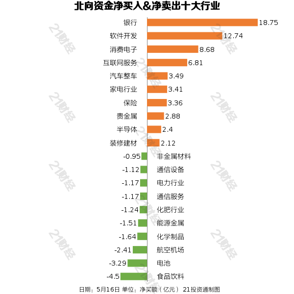 据21投资通智能监测,5月16日,北向资金净买入60.67亿元,其中沪股通净买入37.5亿元,深股通净买入23.17亿元。