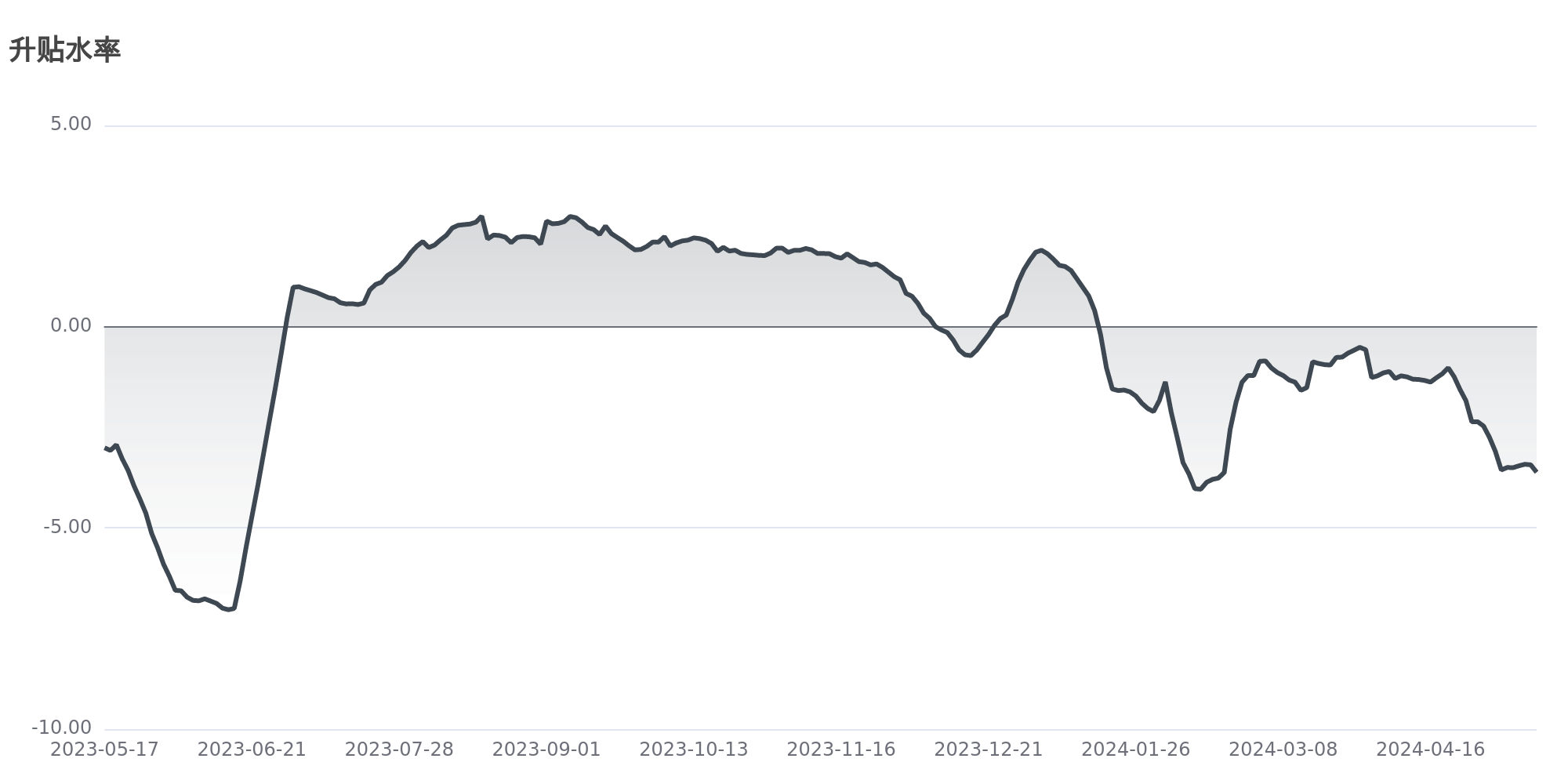今日该指标值为-3.62%,目前该指标处于近一年较低区间,说明投资者对认为A股市场趋于触底反弹。反映期货市场投资者对市场的看法,该指标越高说明投资者认为当前市场较强,越低则说明认为市场相对较弱,因而与上证指数正相关。