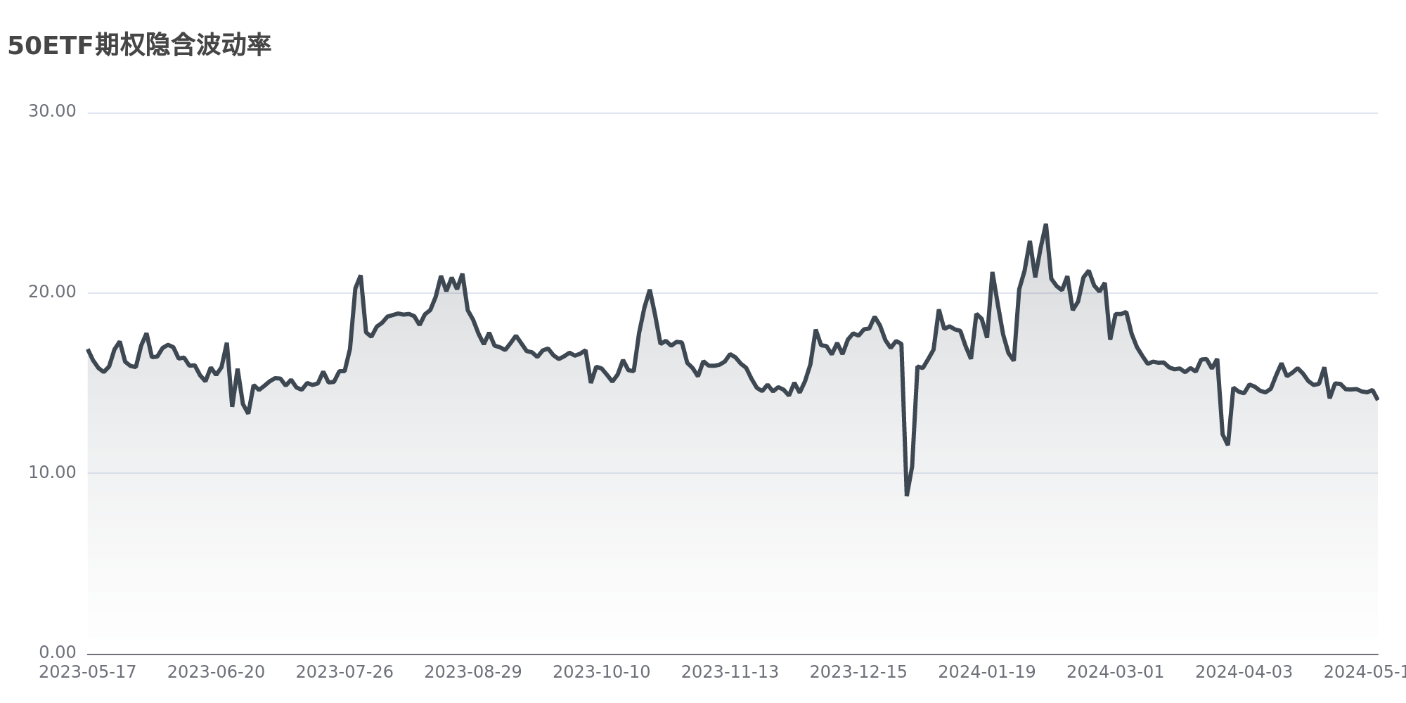 今日该指标值为14.06,目前该指标处于近一年较低区间,说明投资者认为未来市场波动处于较低水平。50ETF期权波动率(原中国波指iVIX,也称作恐慌指数),指数与上证指数存在负相关性,但不绝对。指数点位越高,代表投资者预期后市波动程度愈加激烈;指数点位越低,代表预期后市的走势愈加平稳。VIX在剧烈波动处有聚集的特征,而这些波动聚集处通常是在市场剧烈波动,或指数的低点和高位处。那么,在股指高位处的 VIX 聚拢高企意味着市场风险的集中;而股指快速下跌处的 VIX 高企意味着市场风险的释放。若VIX指数在股市快速下跌时持续的高企并突破极值,这可能预示市场的重大转折——风险已经释放到极致,股市将开始企稳并上扬。