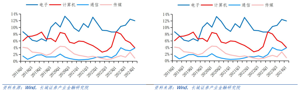 TMT中计算机以及传媒的持仓占比均有较大程度的回落,通信行业依靠5G-A的发展以及芯片行业利好等催化持仓占比继续抬升,电子行业较上季度有小幅下降。