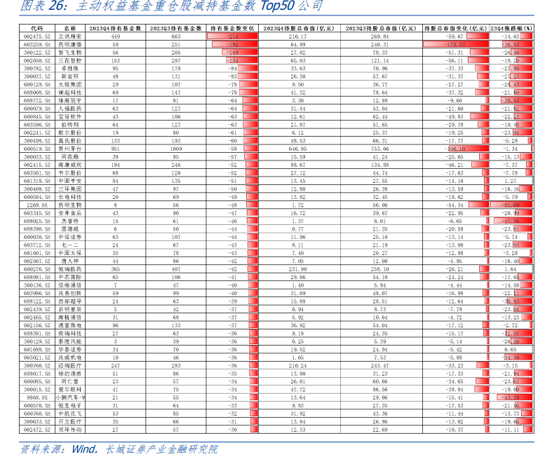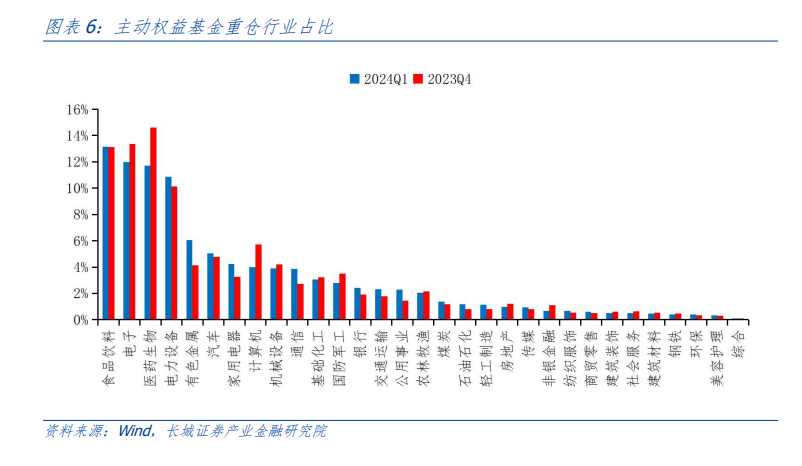 减配方面,预期兑现的生物医药和计算机遭遇较大幅度的减持,持仓占比较23Q4分别下降了2.89个百分点以及1.72个百分点。