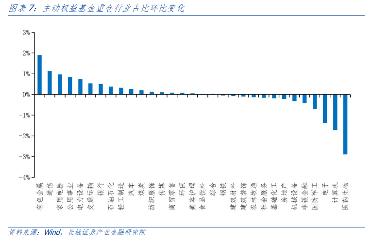 从行业占比的季度变化来看,有色金属获得较大幅度的加仓,行业的占比较上季度提高了1.90个百分点。
