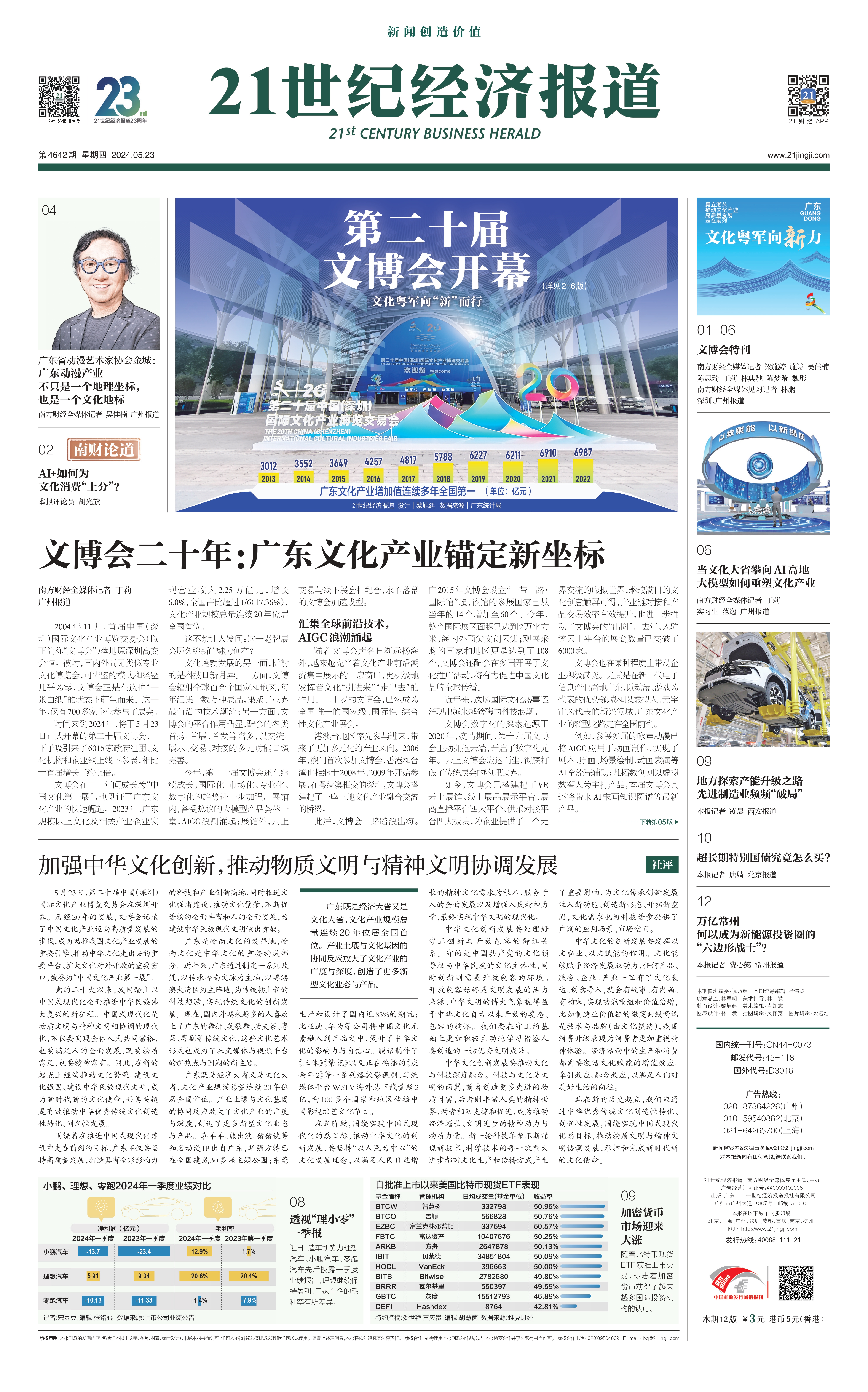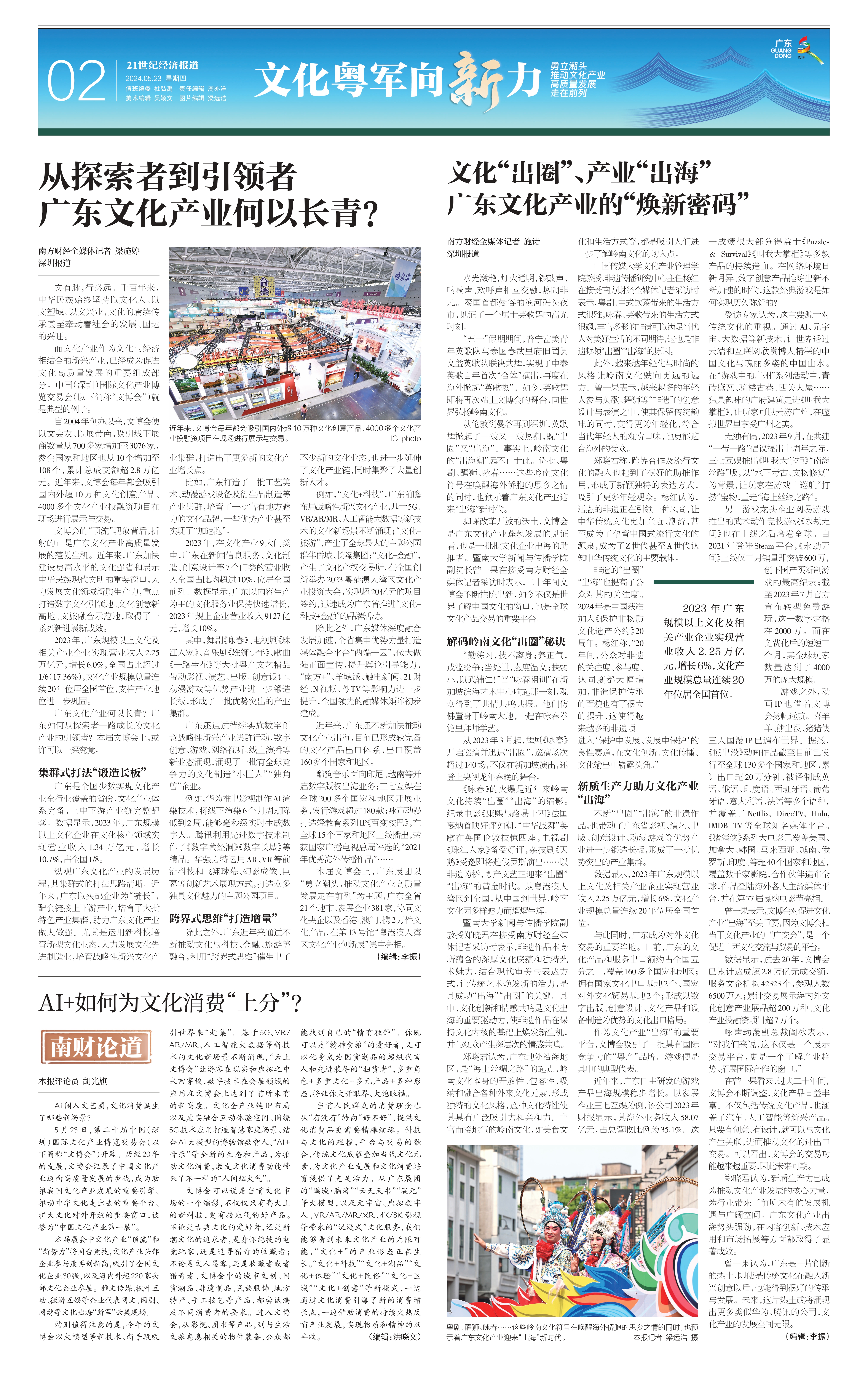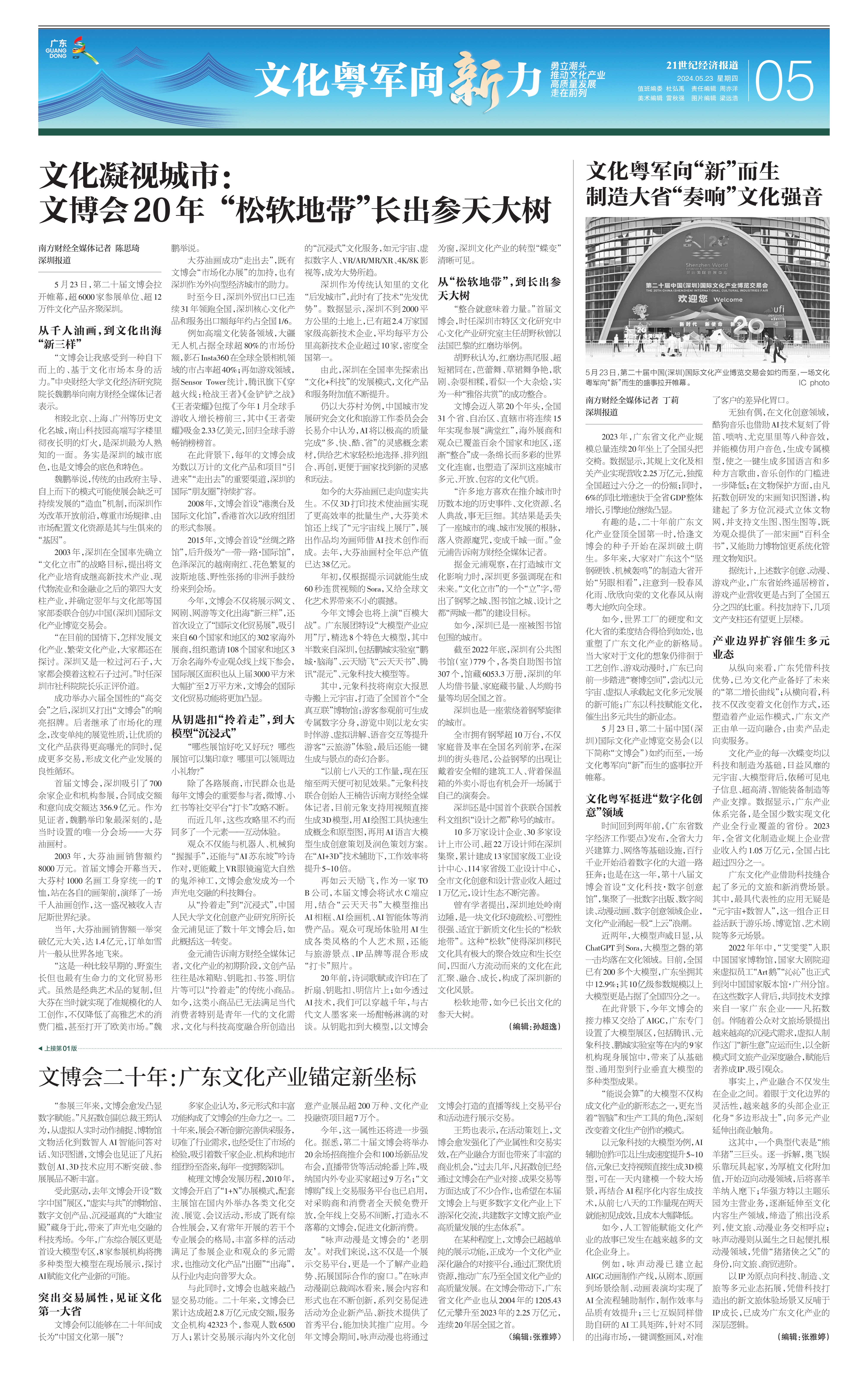 5月23日,第二十届中国(深圳)国际文化产业博览交易会在深圳开幕。历经20年的发展,文博会记录了中国文化产业迈向高质量发展的步伐,成为助推我国文化产业发展的重要引擎、推动中华文化走出去的重要平台、扩大文化对外开放的重要窗口,被誉为“中国文化产业第一展”。