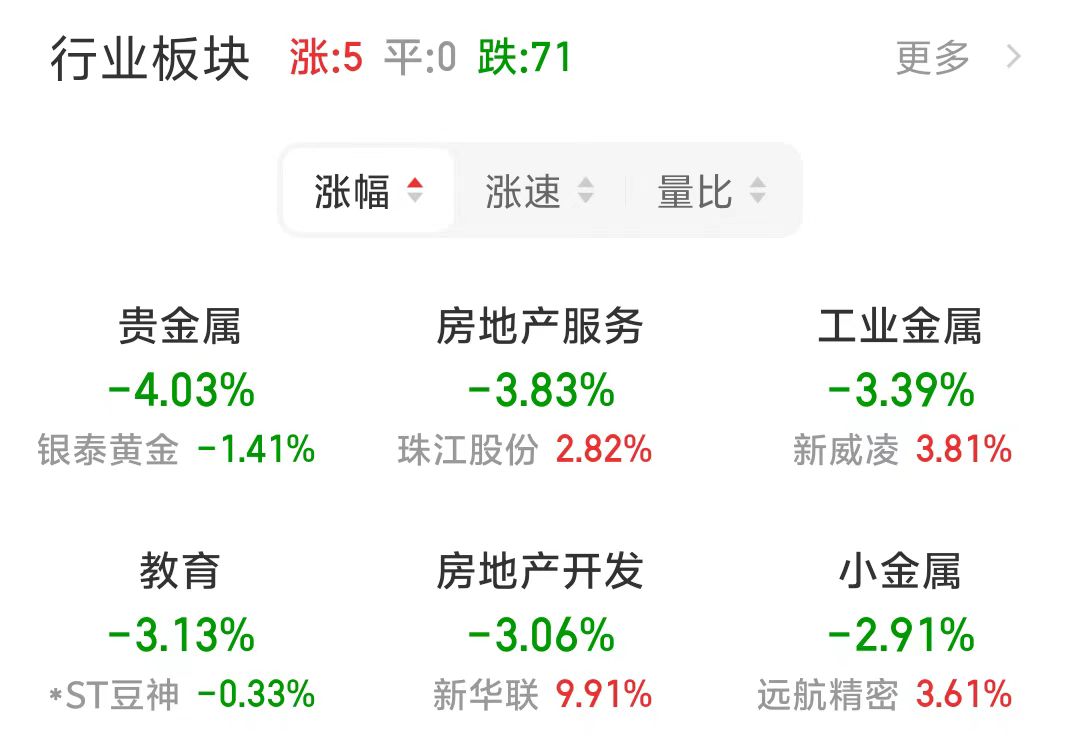 A股市场金属板块大幅低开,截至13点,贵金属指数跌4.03%,工业金属跌3.39%,小金属跌2.91%。