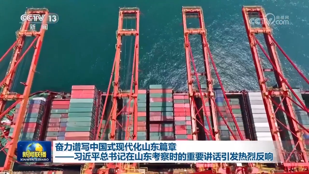黄海之滨,山东日照港全自动化集装箱码头上无人驾驶集装箱卡车往来穿梭。习近平总书记首先来到这里考察,他指出,日照港近年来推进科技创新,将传统港口改造升级为现代化港口,不仅货物吞吐量跻身全国前列,还积累了通过传统产业改造升级发展新质生产力的经验,值得肯定。