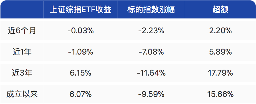 上证综指ETF采用抽样复制策略,在实现跟踪目标的基础上取得了一定超额收益。数据显示,截至3月31日,上证综指ETF各阶段超额收益显著。其中近三年收益6.15%,同期上证综指涨幅为-11.64%,超额收益达到17.79%。