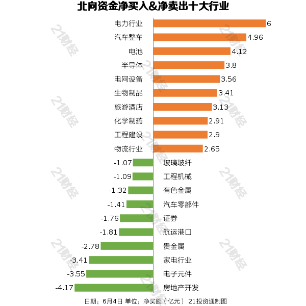 从净买入金额来看,北向资金增持了73个行业,其中电力行业居首,净买入金额达6亿元,其次是汽车整车行业,净买入4.96亿元。