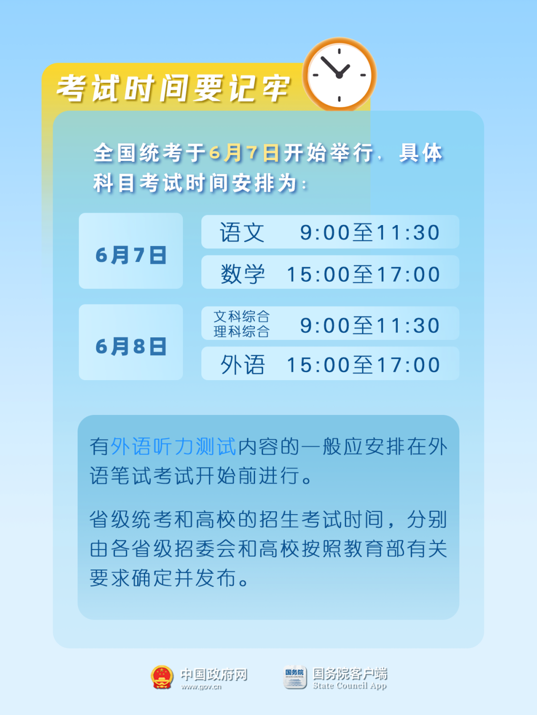来源:中国政府网 原标题:后天高考,这些重要的事一定要再捋一遍!(考前必看)
