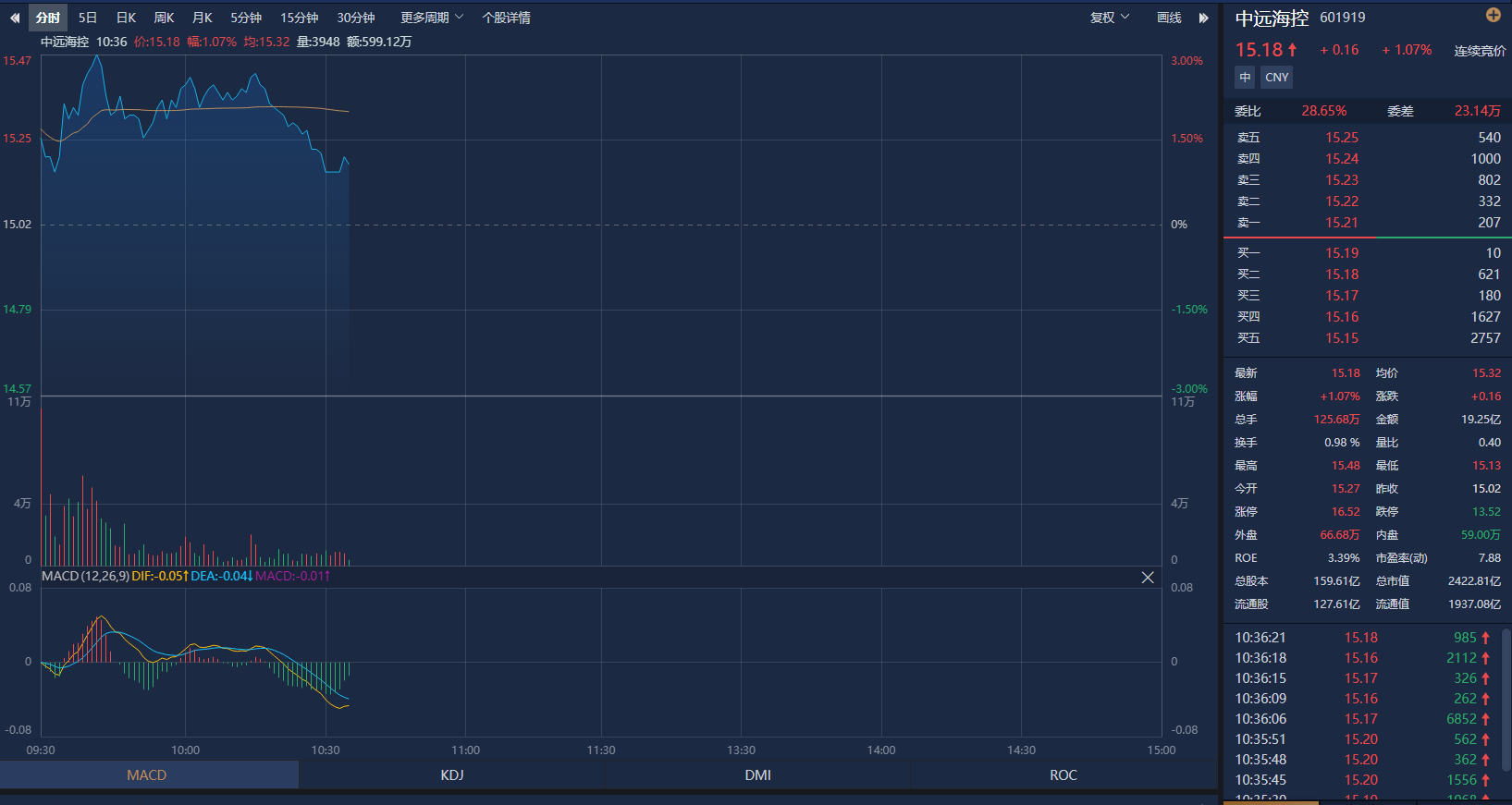 6月14日,在前期多日连续下跌后迎来反弹,今日航运港口板块高开震荡,中远海控高开盘中震荡,现涨1%,报15.17元/股,成交额突破19亿元。消息面上,6月13日,马士基宣布上调7月运价。