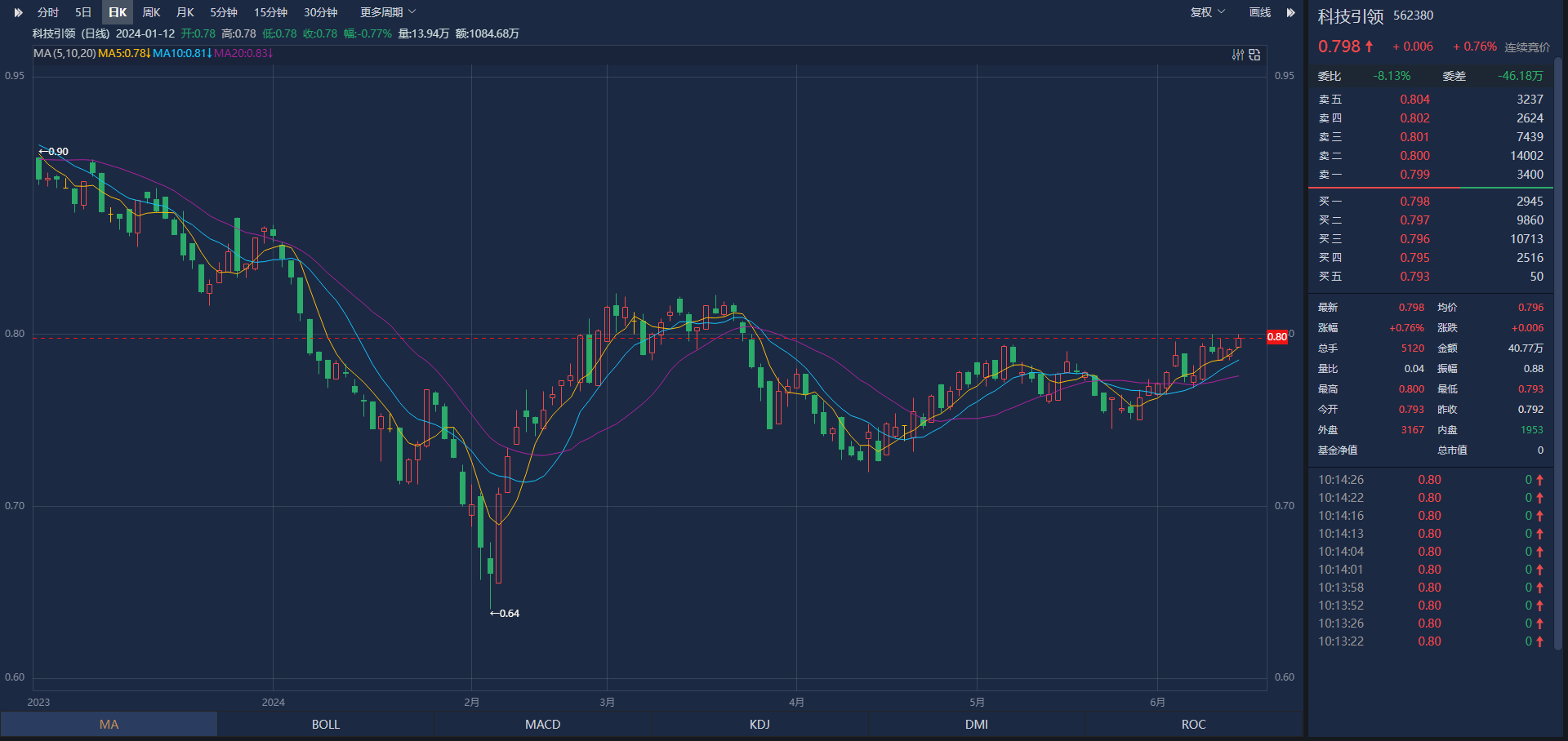 相关ETF方面,央企科技引领ETF(562380)盘中拉升涨0.76%,成交总额超30万元,盘中频现溢价交易,溢折率0.09%。截至上周五(6月14日)收盘,该ETF已经连续两日收红,今日有望冲击“三连阳”。