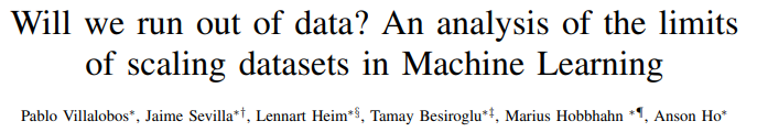 大模型的训练数据会不会耗尽?在本月更新的一项研究成果中,研究机构Epoch AI抛出了一个残酷的现实:他们估测目前人类生成的公开文本总量约为300万亿个Token,但使用数据的速度远远超过了生成数据的速度,这意味着大模型将在2026年至2032年之间消耗完所有可用数据。