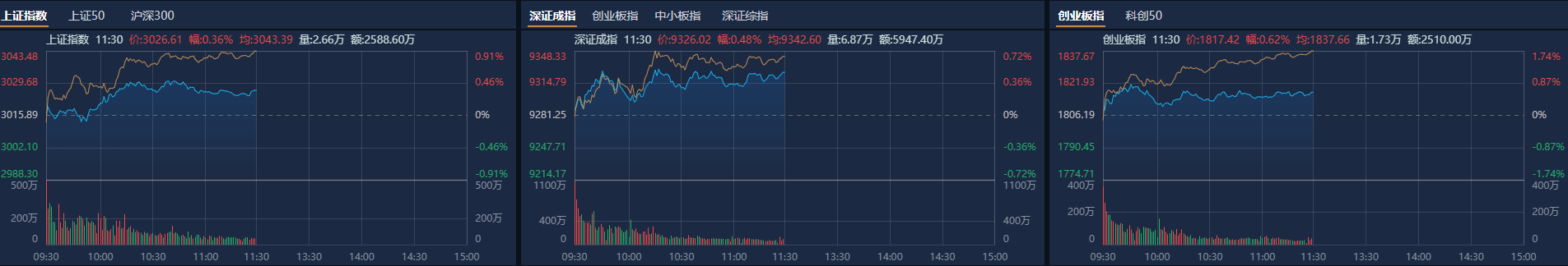 6月18日,市场早盘震荡反弹,三大指数均小幅上涨。截至收盘,沪指涨0.36%,深成指涨0.48%,创业板指涨0.62%。总体上个股涨多跌少,全市场超4000只个股上涨。