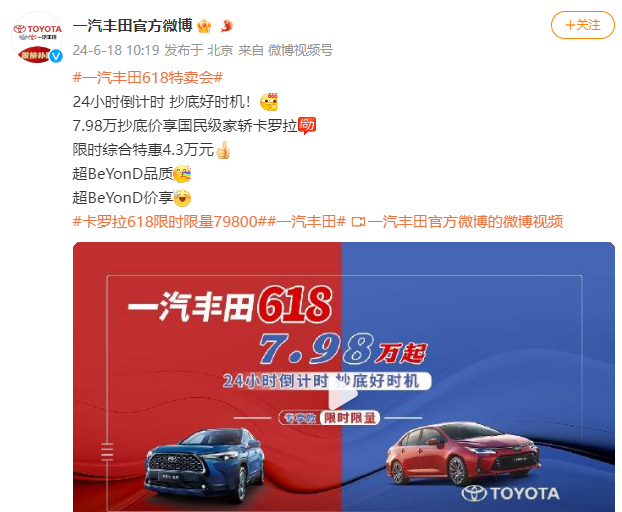 此外,6月18日,一汽丰田官微称,将对卡罗拉车型提供限时综合优惠4.3万元,售价7.98万元起。而记者在实地走访过程中发现,宝来、速腾、雷凌等多款合资A级轿车的终端销售价格都有较大降幅。“随着自主品牌在A级轿车市场的强势崛起,合资车型已经感受到了前所未有的压力。为了稳固市场地位,(合资品牌车型)不得不大幅降价。”一位合资品牌销售人员认为。