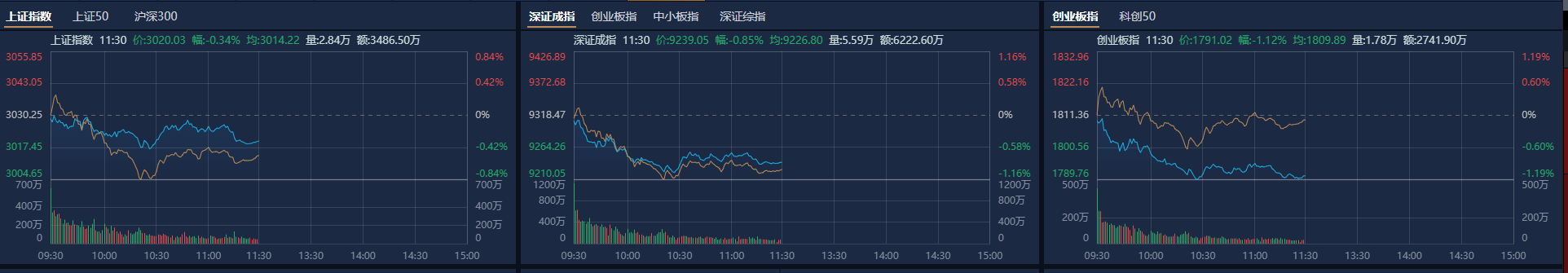 6月19日,市场早盘震荡调整,创业板指领跌。截至收盘,沪指跌0.34%,深成指跌0.85%,创业板指跌1.12%。总体上个股跌多涨少,全市场超3200只个股下跌。