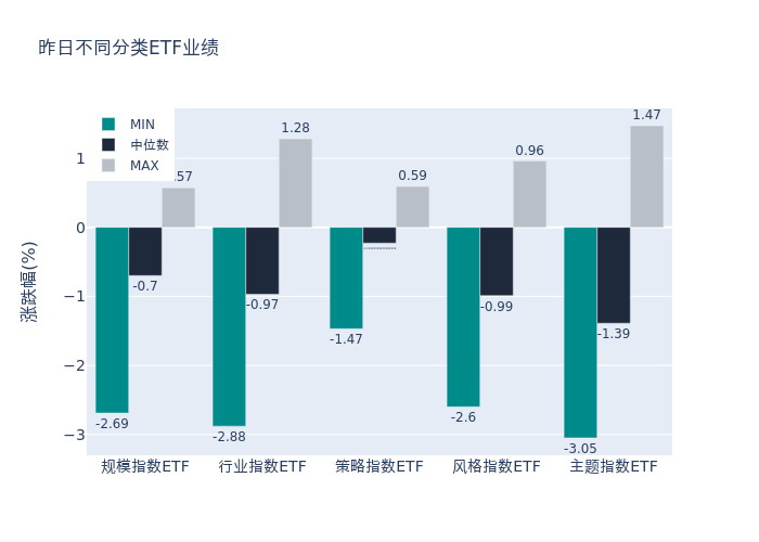 昨日股票型ETF收益率中位数为-1.09%。其中按照不同分类,规模指数中科创50增强ETF收益率最高,为0.57%;行业指数中汇添富中证能源ETF收益率最高,为1.28%;策略指数中南方富时中国国企开放共赢ETF收益率最高,为0.59%;风格指数中易方达上证科创板成长ETF收益率最高,为0.96%;主题指数中嘉实上证科创板芯片ETF收益率最高,为1.47%。