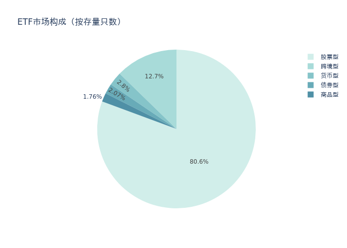 上周市场上存量ETF共计966只,其中股票型ETF779只,债券型ETF20只,货币型ETF27只,商品型ETF17只,跨境型ETF123只。