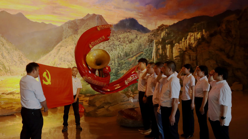 中建三局江西分公司在南昌新四军军部旧址陈列馆重温入党誓词。(受访单位供图)