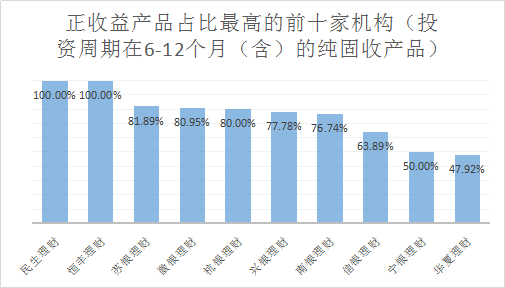 榜单筛选条件:理财公司发行的投资周期在6-12个月(含)的公募纯固收产品,且近1年每个完整的自然月月末均为正收益。