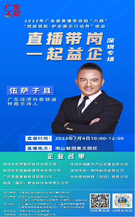 2023年广东省直播带岗助“六稳”活动由工业和信息化部中小企业发展促进中心指导,广东省工业和信息化厅、广东省教育厅、广东省人力资源和社会保障厅及共青团广东省委员会共同主办,广东省中小企业服务中心、广东省就业服务管理局、广东省青年创业就业促进中心以及广东经济科教频道共同承办。