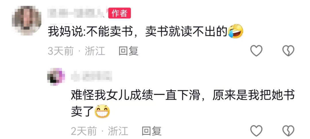 有网友表示,当地有句老话:小孩子的书不能卖!卖了书就是把知识流出去了,卖书会读不出书。